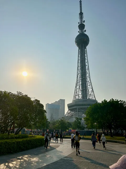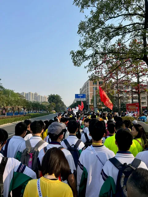 到现场直接吓懵 —— 人也太多了吧!电视塔下面全是人。之前我还想走50公里不是普通的运动量,参加的人应该不多,结果发现满头白发的老人、三岁小孩都来参加,看来我低估了大家对这个活动的积极性。好,从此刻正式开始!