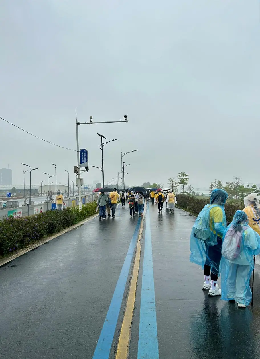 清晨八点半准时出发,天阴沉沉的,出发就飘起小雨。 穿着防水风衣依旧挡不住凉意,但看着身边所有人都热情满满,瞬间充满动力,直接开冲!
